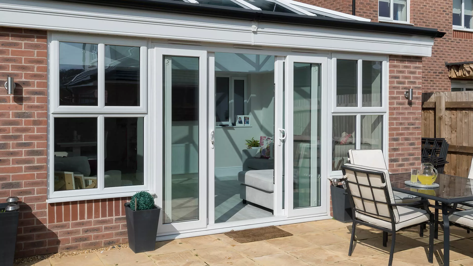 Patio doors are constructed using a very high percentage of glass which makes smaller spaces feel larger than they actually are. Whether the patio doors are closed or open, they will allow natural light to fill your home with cosy warmth.